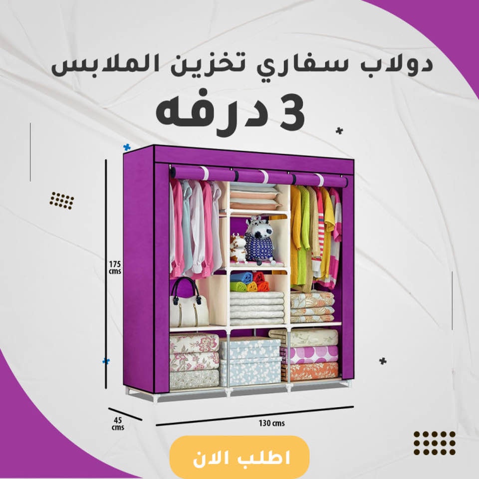 دولاب ٣ درفه سهل تنظمى ملابس اطفالك واللعب والكتب كمان سهل الفك والتركيب وتخزينه أو نقله إلى مكان اخر مستورد ،معدن كفر قماش مقوى مقاس 175x45 x130