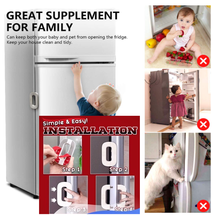 عرض 2 قفل باب ثلاجة او الفريزر عائلي فريد قفل باب أمان للأطفال بدون مفتاح