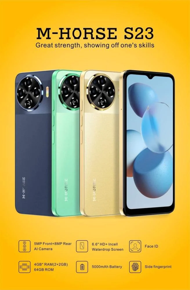 بنقدملك العظمه دي تليفون (M Horse S23 _ ام هورس) المميز، بييجي بشكل جميل جداً يخطف العين و عملي جدا ويسد معاك وكمان سعره مش غالي وبيدعم خواص حديث زي بصمه الاصبع في الجنب و بصمه الوجه وكمان بييجي ب اندرويد 13 وسوفت وير حديث